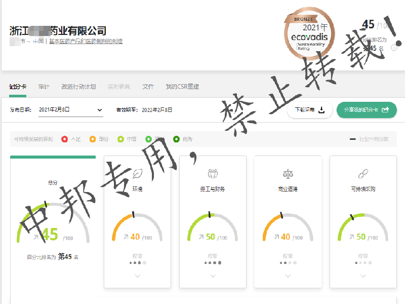 经过我司专业辅导老师,相关业务以及工厂相关验厂负责人的共同努力,该厂于2021年2月顺利通过EcoVadis审核,在此表示祝贺!每一次的验厂,认证,中邦都会认真对待,不仅仅是验厂通过,更注重客户的感受,客户每一次的真诚回馈都会令我们感动,真诚期待我们下一次的合作。